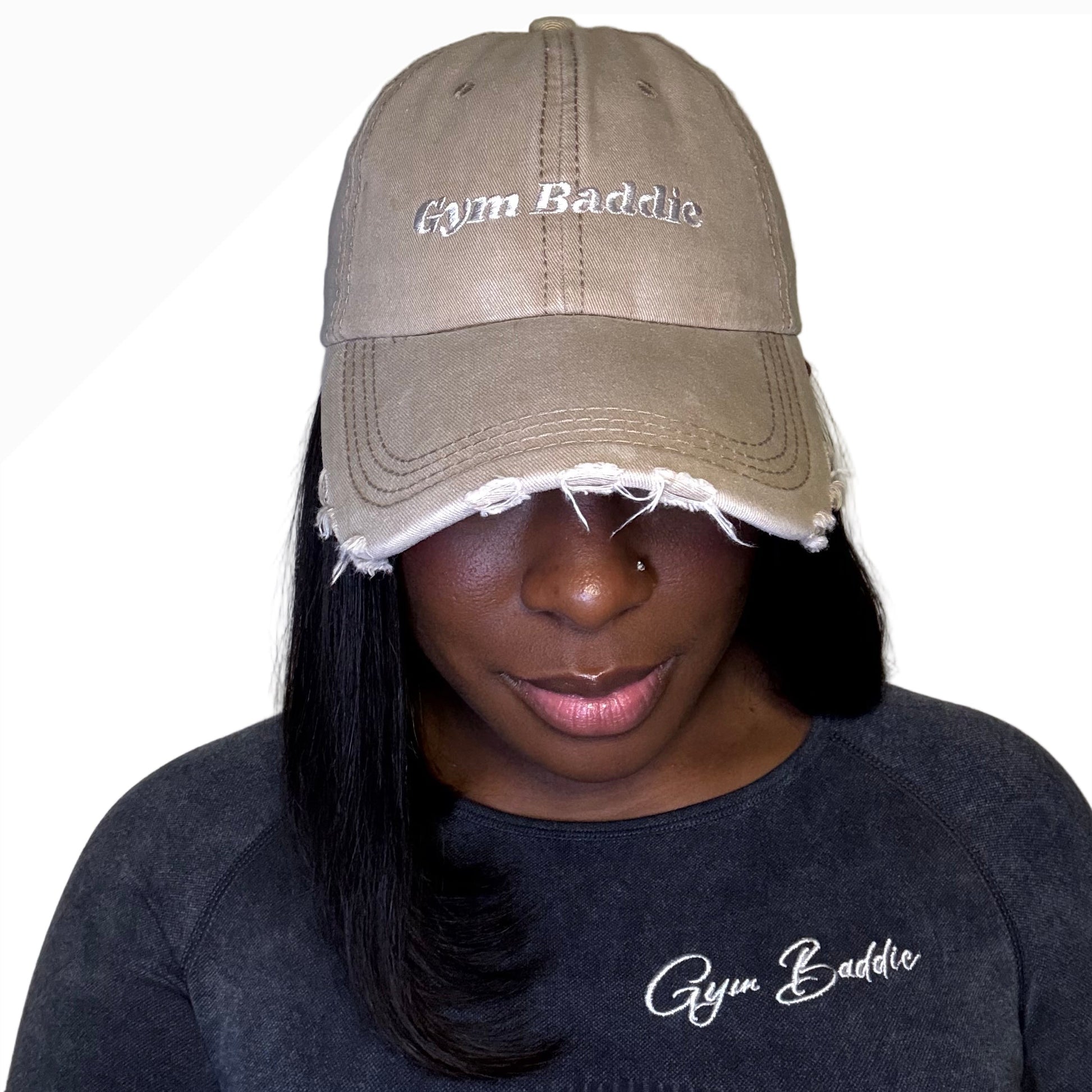 Top off your fit with the Gym Baddie Crown Cap — the perfect blend of casual street style and gym-ready edge. Featuring a soft, washed denim look with frayed detailing and our signature Gym Baddie embroidery, this cap is your go-to accessory for workouts, errands, or chill days. Adjustable strap ensures a comfortable fit for every baddie on the move.